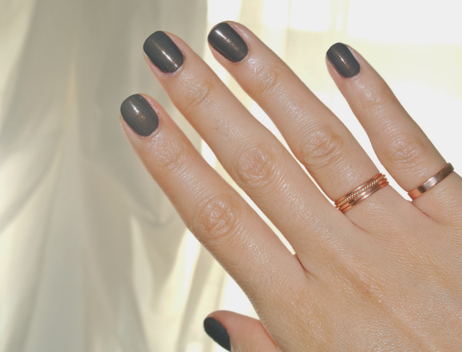 I haven't done a #NOTD post in awhile because I mainly keep that on my Instagram (id: etherealellie). It seems frivolous to post a simple nail-polish post, but I just wanted to do one again this time because I have been in love with this particular nail polish. It is Essie's nail color in "Armed and Ready". The shade is army green but with dimensional mixture of golden sheen. It prettier in person! Strangely, in photos, sometimes it looks a bit blue and a bit gray too. I love how crazy this color is, but looks very neat in person. Most swirly shades look a bit crazy on the nails, but this one is subtle.